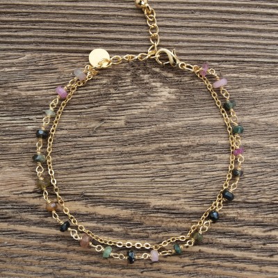 Камни на цепочке из стерлингового серебра с позолотой 14 карат.