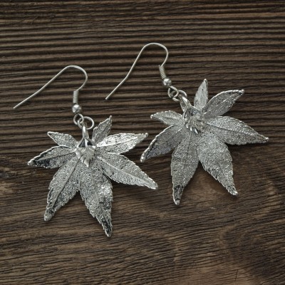 Серьги изготовлены на основе натурального листа японского клена с гальваническим покрытием серебром.