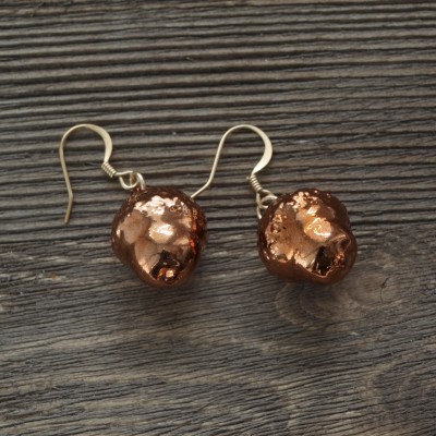 Серьги изготовлены на основе натурального желудя с гальваническим покрытием медью.