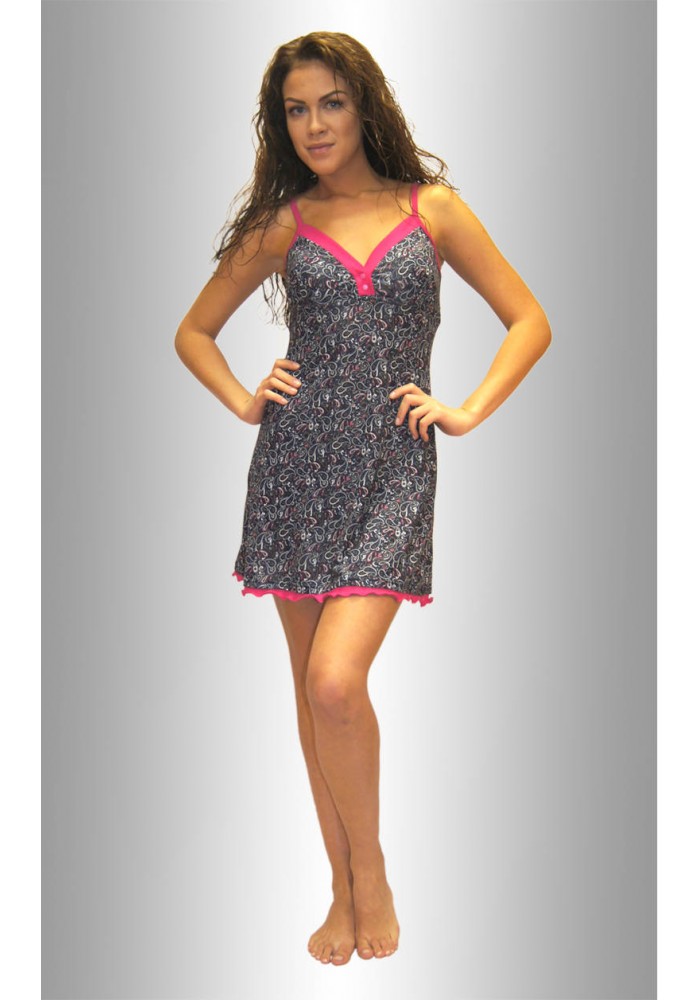 Описание: Сорочка - на бретелях, с отрезной кокеткой из 2-х частей лифа с отделкой, с 2-мя кнопками, по низу отделка рюш