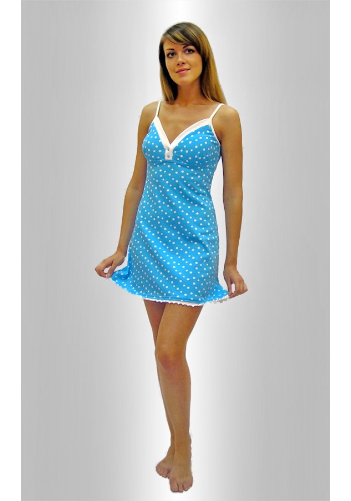 Описание: Сорочка - на бретелях, с отрезной кокеткой из 2-х частей лифа с отделкой, с 2-мя кнопками, по низу отделка рюш