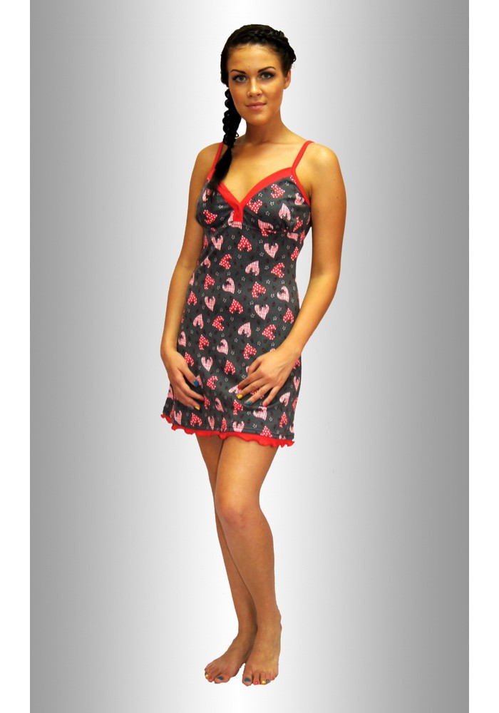 Описание: Сорочка - на бретелях, с отрезной кокеткой из 2-х частей лифа с отделкой, с 2-мя кнопками, по низу отделка рюш