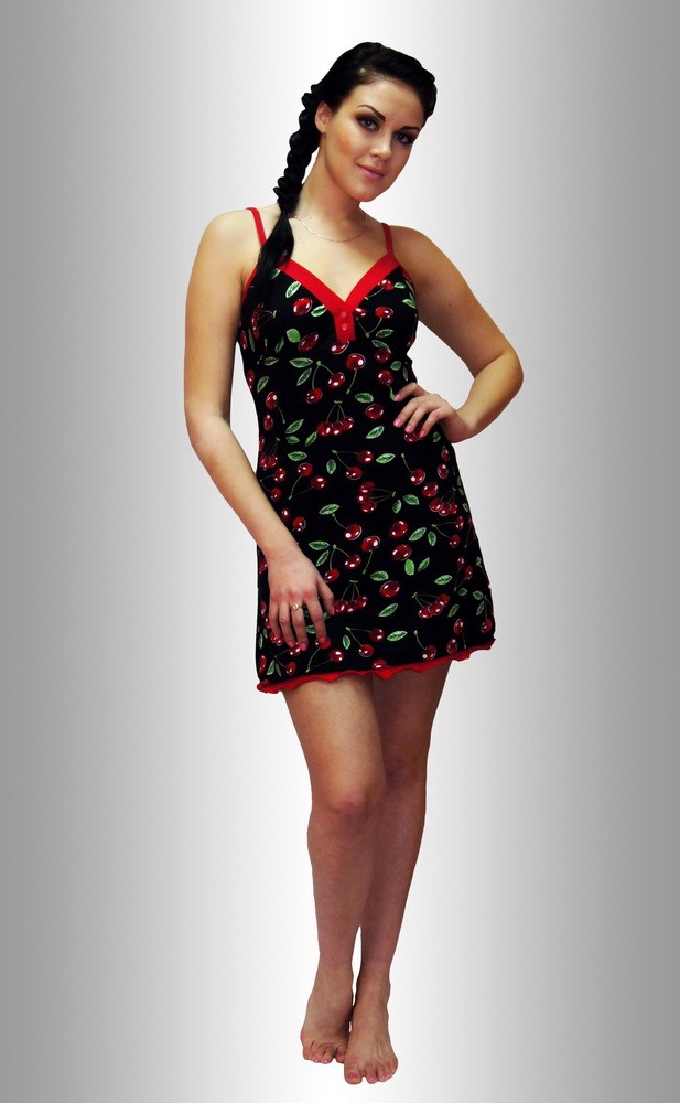 Описание: Сорочка - на бретелях, с отрезной кокеткой из 2-х частей лифа с контрастной отделкой, с 2-мя кн, по низу отделка рюш