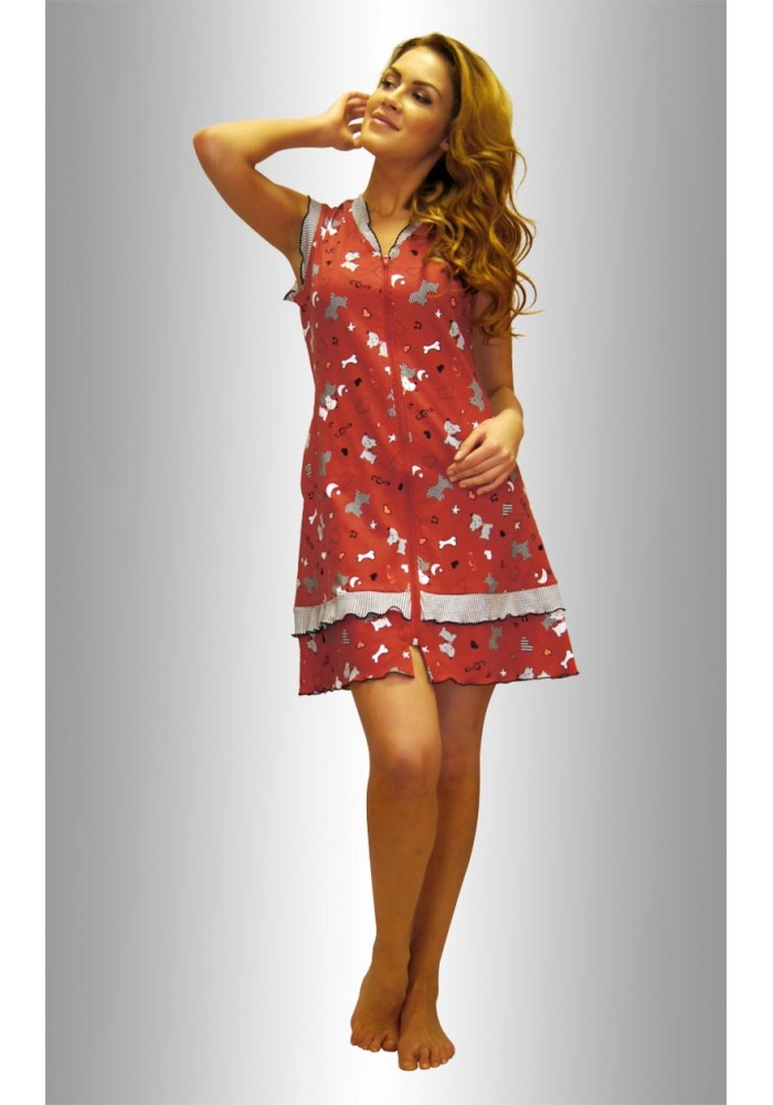 Описание: Халат - без рукавов, на молнии, с воланом, V-образная горловина, по пройме и горловине отделка рюш, с внутренними карманами