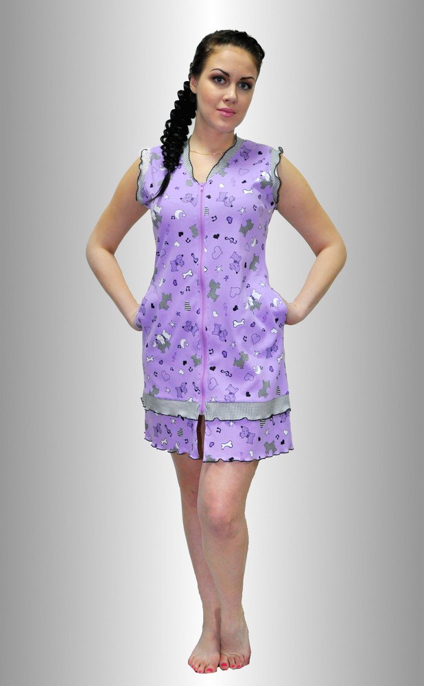 Описание: Халат - без рукавов, на молнии, с воланом, V-образная горловина, по пройме и горловине отделка рюш, с внутренними карманами