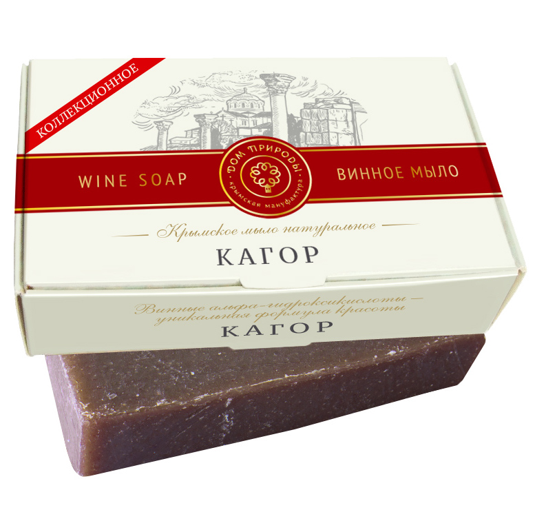 Состав: омыленные растительные масла (оливковое, кокосовое, касторовое, виноградных косточек), вода подготовленная, вино (сорта Кагор, Саперави, Кахет), цельный виноград мелкодисперсный, молотые виноградные косточки, облепиховое масло, экстракт листьев винограда, винная кислота, эфирные масла лайма, мандарина, ванили; кармин.